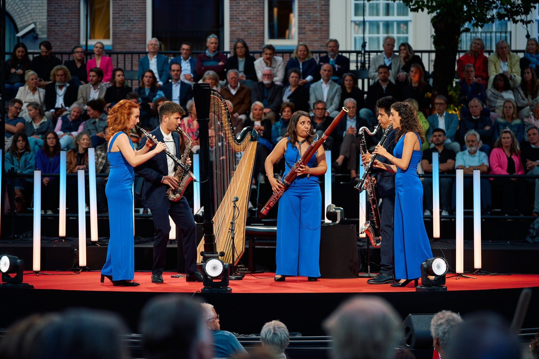 Dianto Reed Quintet ofreció un breve concierto el 23 de agosto en el Prinsengrachtconcert 2025 en el canal frente al Hotel Pulitzer, en Ámsterdam.
